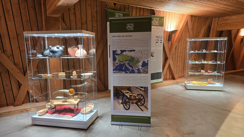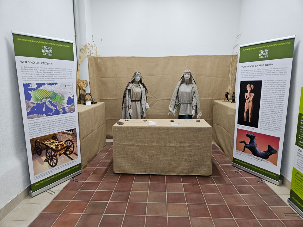 Seit Mitte April ist die von Vorstand und Beirat des Vereins KeltenWelten e.V. neu gestaltete Wanderausstellung mit Repliken von Fundstücken mehrerer Mitglieder unterwegs. Nach dem Start im Archäologiepark Belginum ging es weiter nach Heldenbergen zum „Verein für Vor- und Frühgeschichte im unteren Niddertal e.V.“, danach zu unserem neuen luxemburgischen Mitglied in Remerschen. Momentan ist die Ausstellung (noch bis 31.01.2026) im Kulturzentrum Heidengraben bei Erkenbrechtsweiler zu sehen; anschließend wird sie im Museum Kelheim aufgebaut.